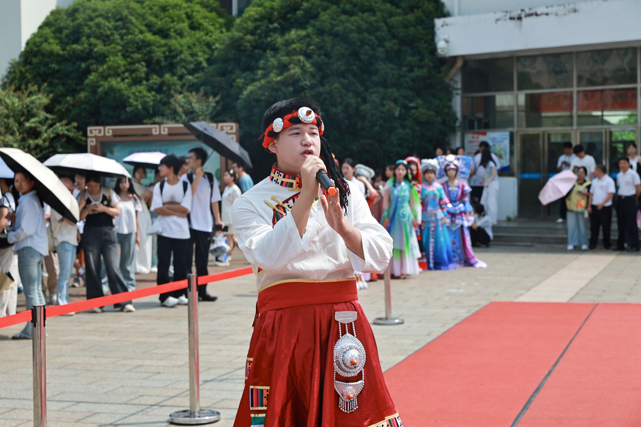 9月30日,学校“迎国庆·颂团结:铸牢中华民族共同体意识 江飞‘最炫民族风’多元绽放”主题民族走秀活动璀璨启幕。活动以灵动的民族艺术、厚重的文化底蕴为核心,将民族服饰与青春风采深度融合,生动诠释中华民族共同体意识。校党委书记陈震,校长龙国英,党委副书记张海涛,党委委员、副校长郭军华亲临现场观看表演。