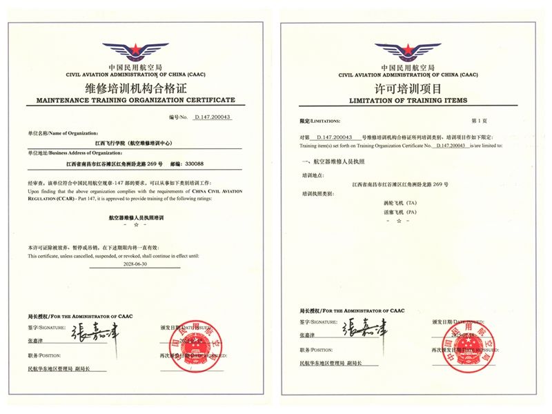 据悉,今年8月,经中国民航局审批,学校获得CCAR-147部培训资质、航空器维修人员执照涡轮飞机(TA)和活塞飞机(PA)培训许可证,正式列入民航局官方认可的航空维修人才培养机构名录,成为江西省内获民航局批准的航空器维修人员执照培训类别最全的单位。学校航空维修培训中心负责人介绍,经学校全过程培训,飞行器制造工程和飞行器维修技术等航空飞行类专业学生可获得相关证书,这类学生毕业就业率可确保在95%以上,薪资待遇也能比未取证学生高出很大一截。