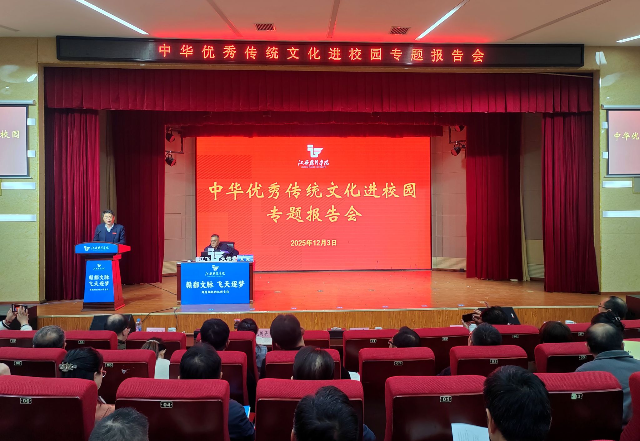 12月3日下午,学校特邀江西省委原常委、省政府原副省长、南昌大学教授、博士生导师朱虹作中华优秀传统文化进校园专题报告。报告会由校党委书记陈震主持,在家校领导出席活动。