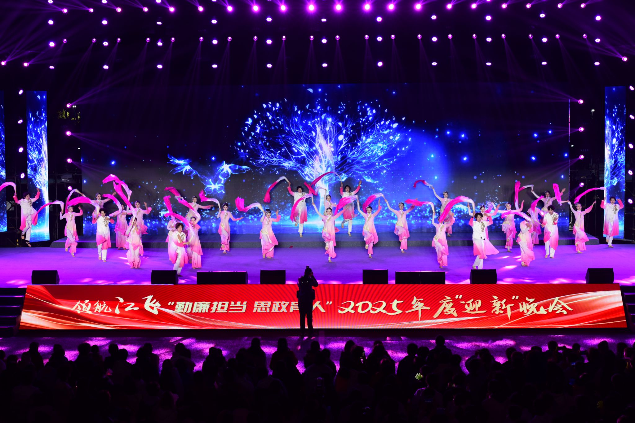 晚会期间,校领导与各二级学院党总支书记分别为“国家奖学金”“国家励志奖学金”获奖学生代表颁奖,表彰先进,树立青春榜样。随后,风尚秀《大美江飞》以创意编排展现校园风采,乐器演奏《国韵雅乐》勾勒出国风雅韵,青春舞《红日》涌动蓬勃朝气,话剧《红飞之路》生动展现了航空报国情怀。最终,晚会在气势磅礴的大型歌舞《领航》中圆满落幕。