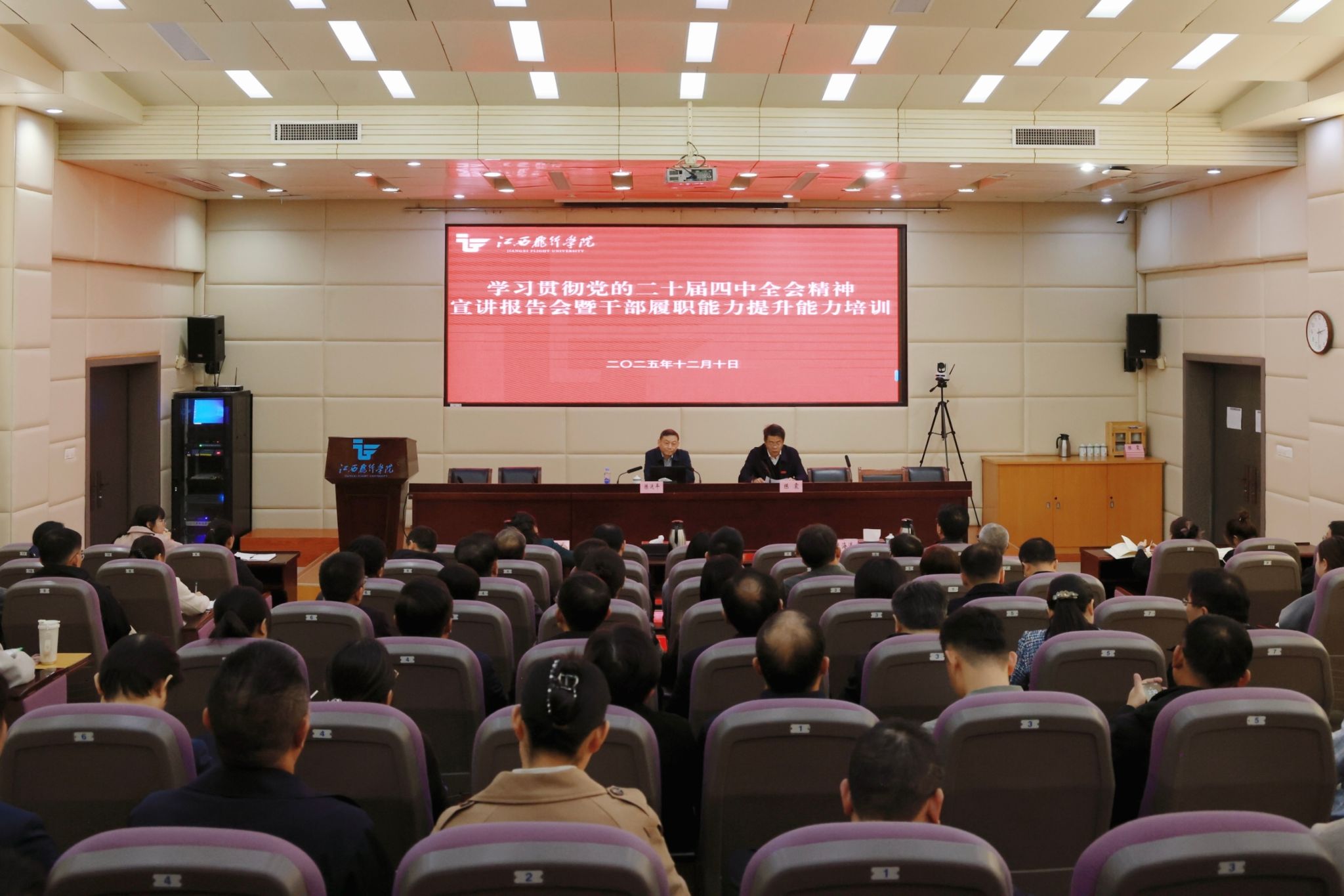 陈震指出,此次报告会是学校学习宣传贯彻党的二十届四中全会精神及省委十五届九次全会精神的一次重要安排,是全校科级以上干部深入学习贯彻党的二十届四中全会精神暨干部履职能力提升培训班的一堂核心课程,也是党员、干部统一思想,奋力谋划学校“十五五”事业发展规划的再次动员。