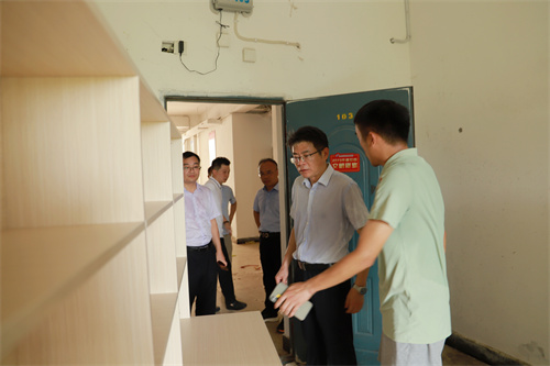 陈震先后来到教学楼、运动场、田径场、学生宿舍,对暑期校园重点项目建设情况进行督导,询问了解各项目施工进展情况。