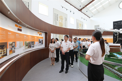 陈震一行先后参观了江中药谷文化墙、江中馆、液体制剂车间和智慧仓储车间,近距离感受“最美中国工厂”的风采,了解江中药业在科技创新、产学研用等方面的情况,感悟新时代培育和发展新质生产力、培养高素质创新型人才的重要性。在参观过程中,陈震给实践队队员们开展了一次思政课现场教学。