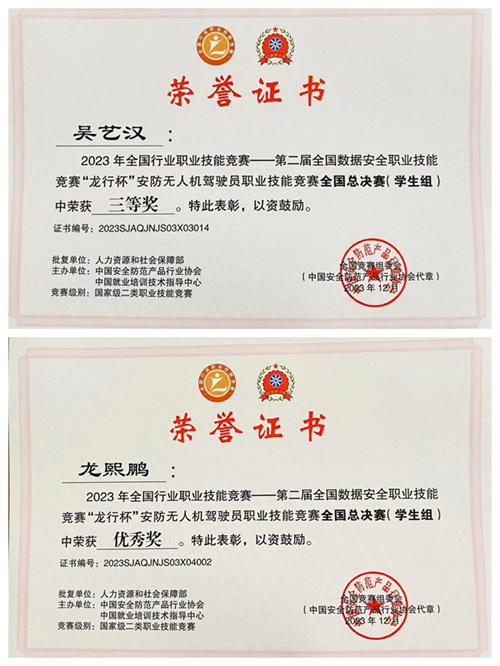 近日,2023年全国行业职业技能竞赛——第二届全国数据安全职业技能竞赛“龙行杯”安防无人机驾驶员职业技能竞赛全国总决赛获奖结果公布,学校飞行技术学院9名师生代表学校参赛,获得13项奖项及荣誉。