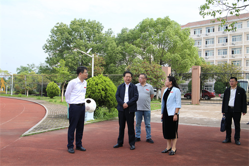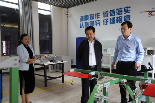 卢天锡一行实地调研了学校航空大楼、田径场、羽毛球馆等场所,了解学校办学条件和人才培养情况。