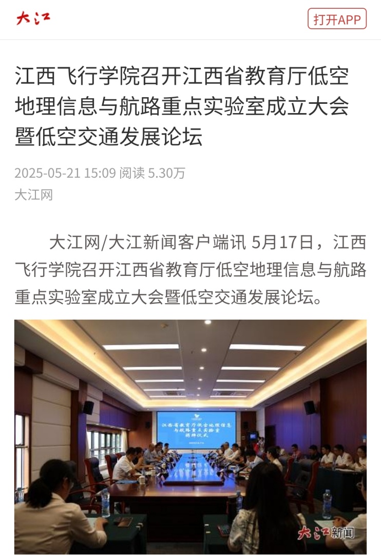 大江网:江西飞行学院召开江西省教育厅低空地理信息与航路重点实验室成立大会暨低空交通发展论坛