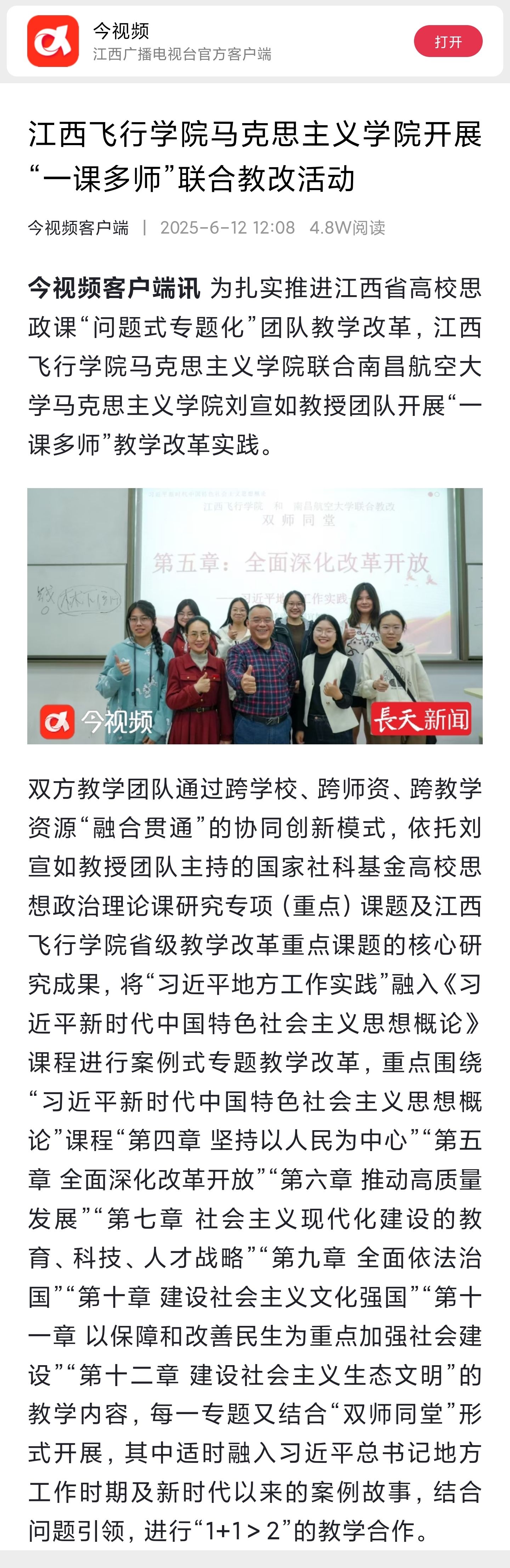 今视频:江西飞行学院马克思主义学院开展“一课多师”联合教改活动