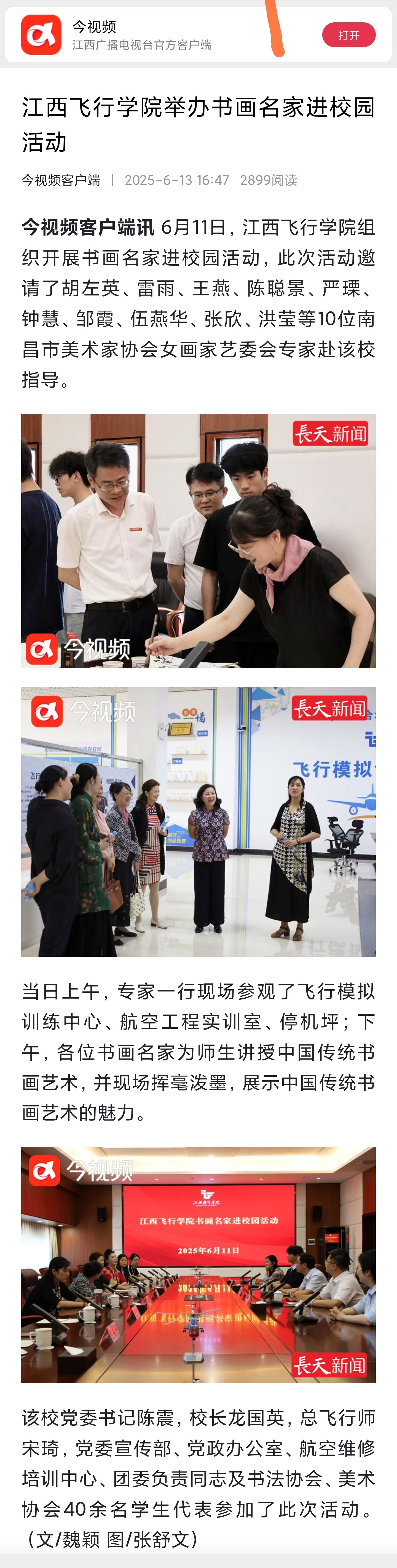 近日,今视频报道,江西飞行学院举办书画名家进校园活动详情如下