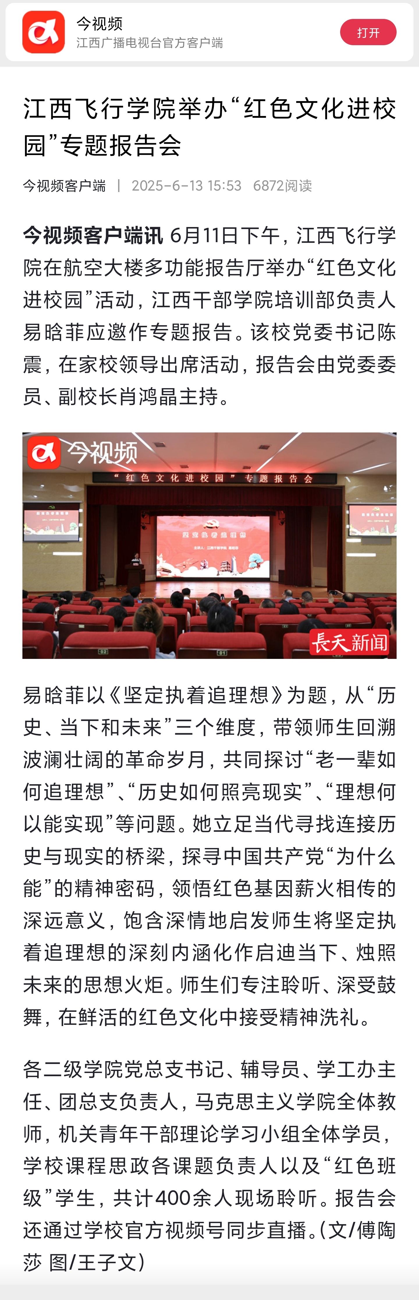 今视频:江西飞行学院举办“红色文化进校园”专题报告会
