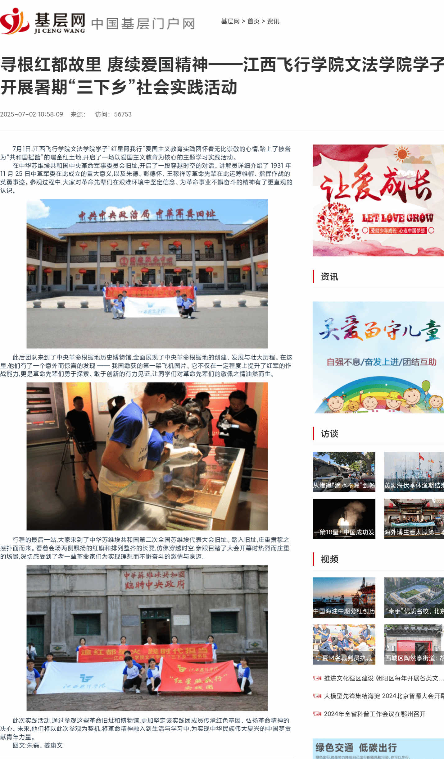 中国基层门户网:根红都故里 赓续爱国精神——江西飞行学院文法学院学子开展暑期“三下乡”社会实践活动