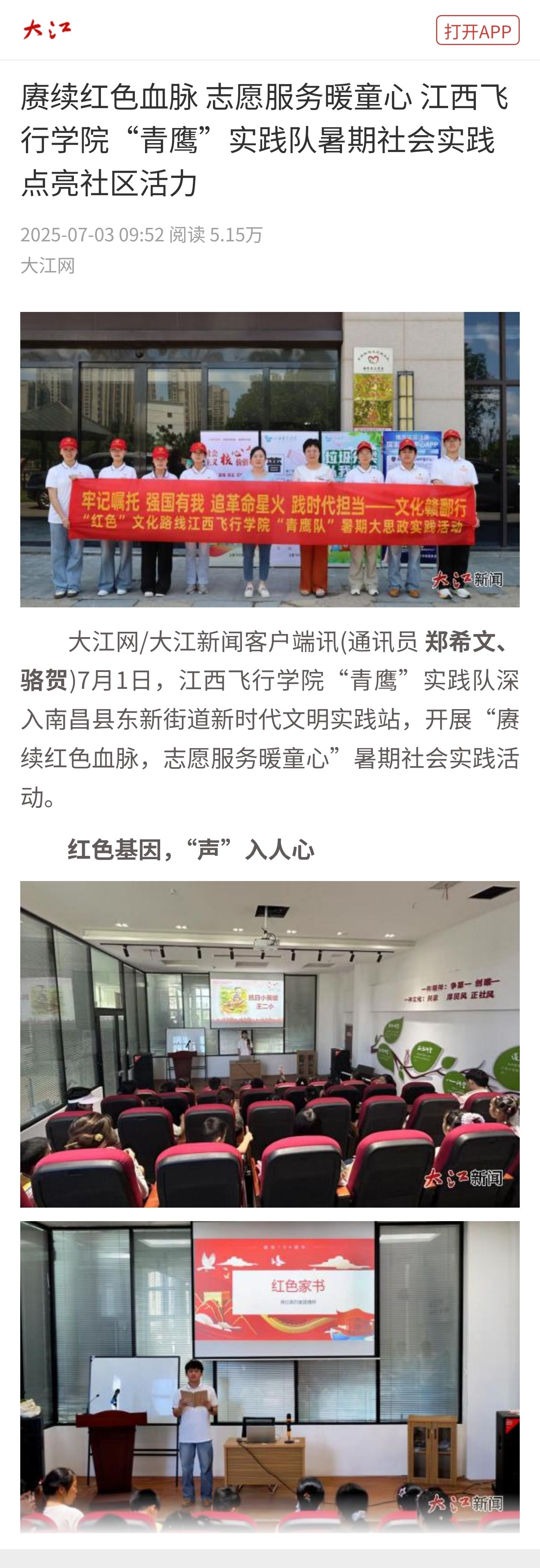 大江网:大江网报道,江西飞行学院“青鹰”实践队暑期社会实践点亮社区活力