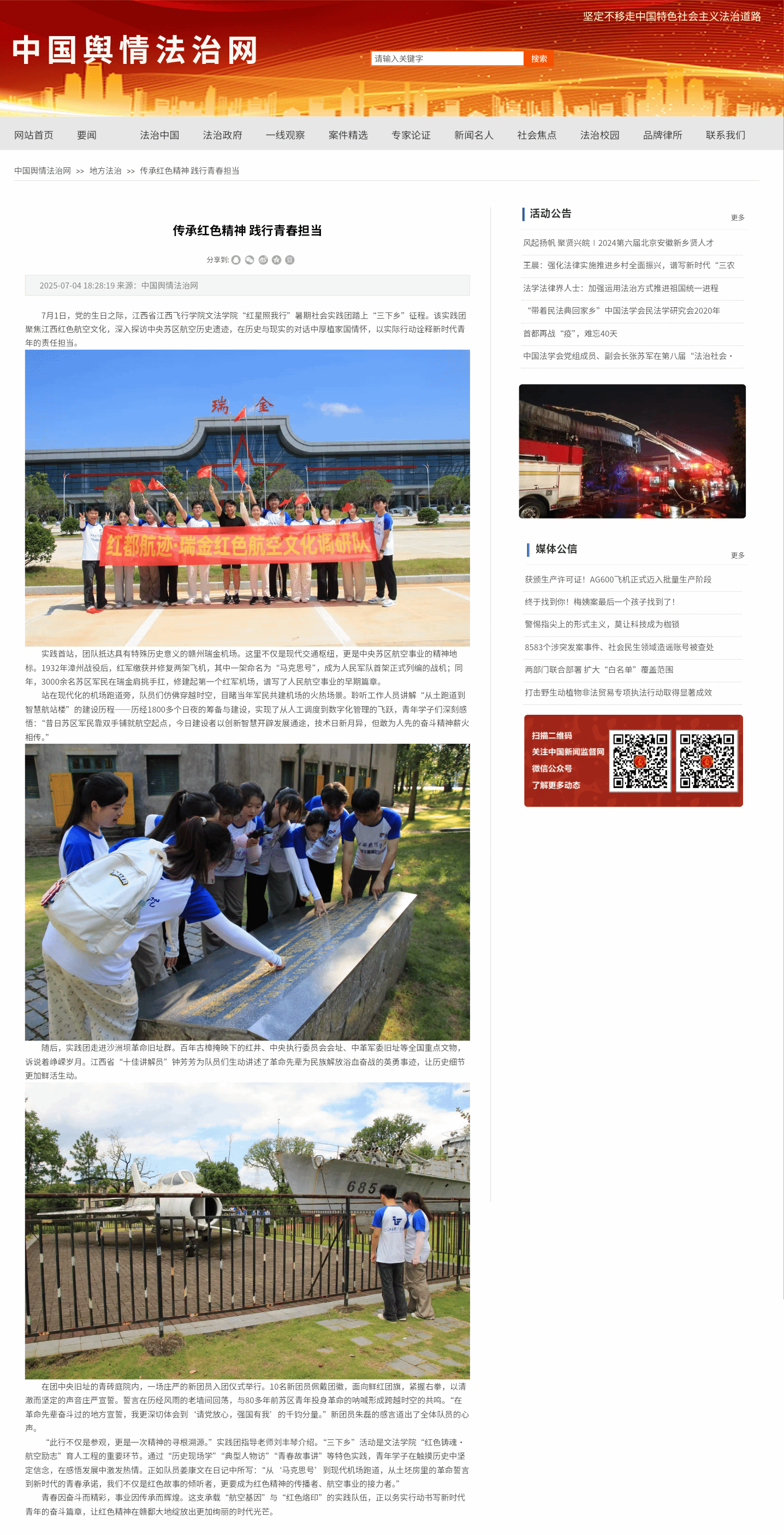 近日,中国舆情法治网报道,传承红色精神 践行青春担当详情如下