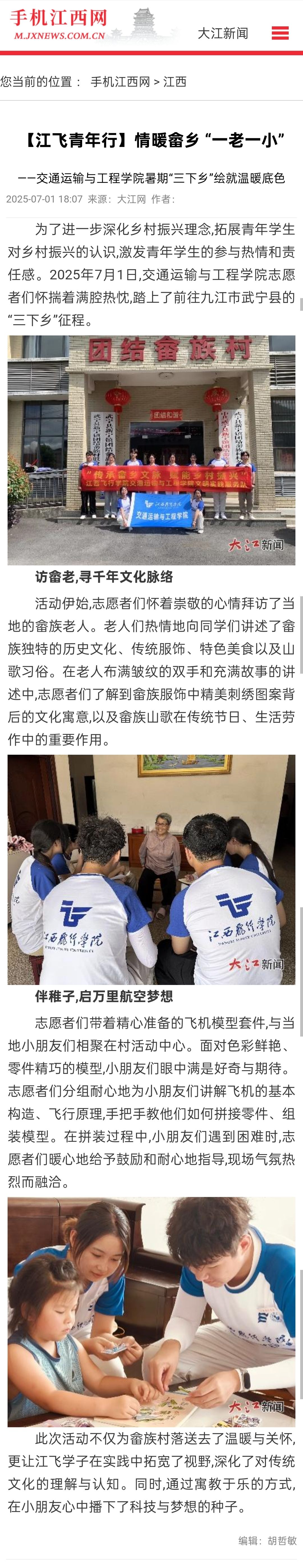手机江西网:【江飞青年行】情暖畲乡 “一老一小”