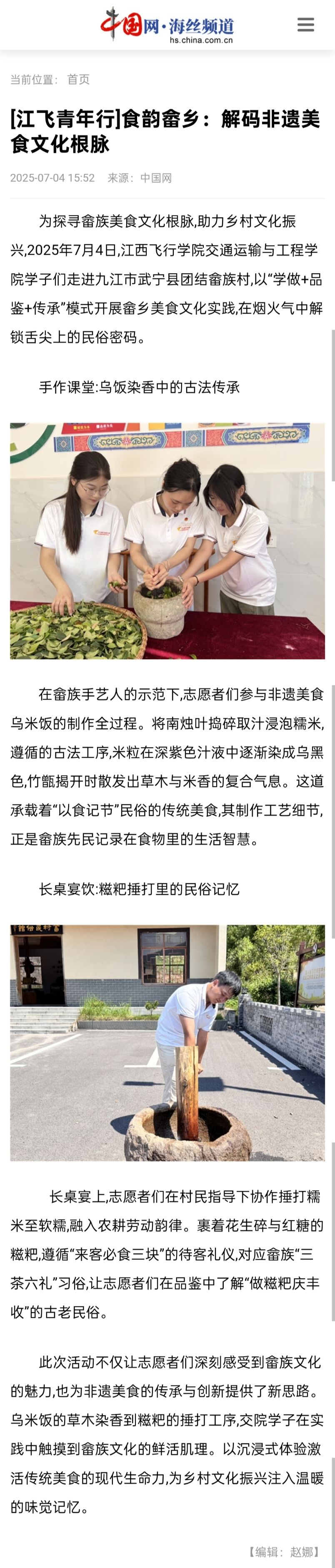 近日,中国网在线报道,[江飞青年行]食韵畲乡:解码非遗美食文化根脉详情如下: