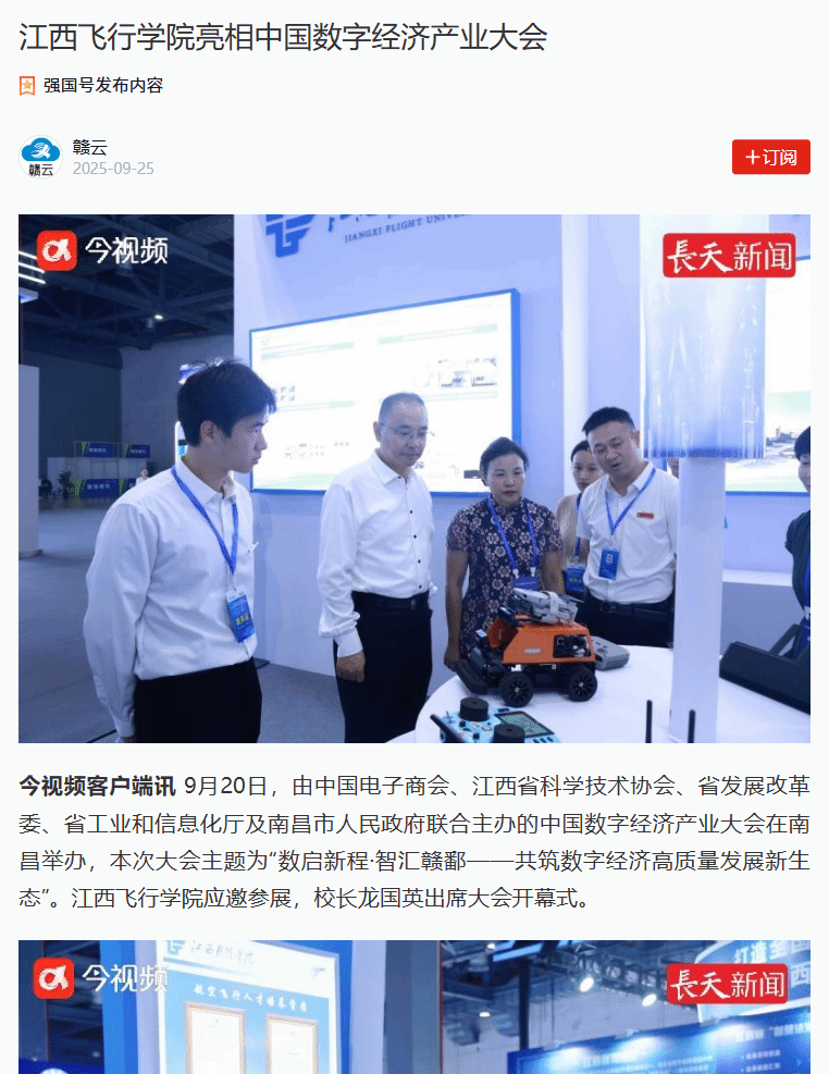近日,学习强国报道,江西飞行学院亮相中国数字经济产业大会详情如下: