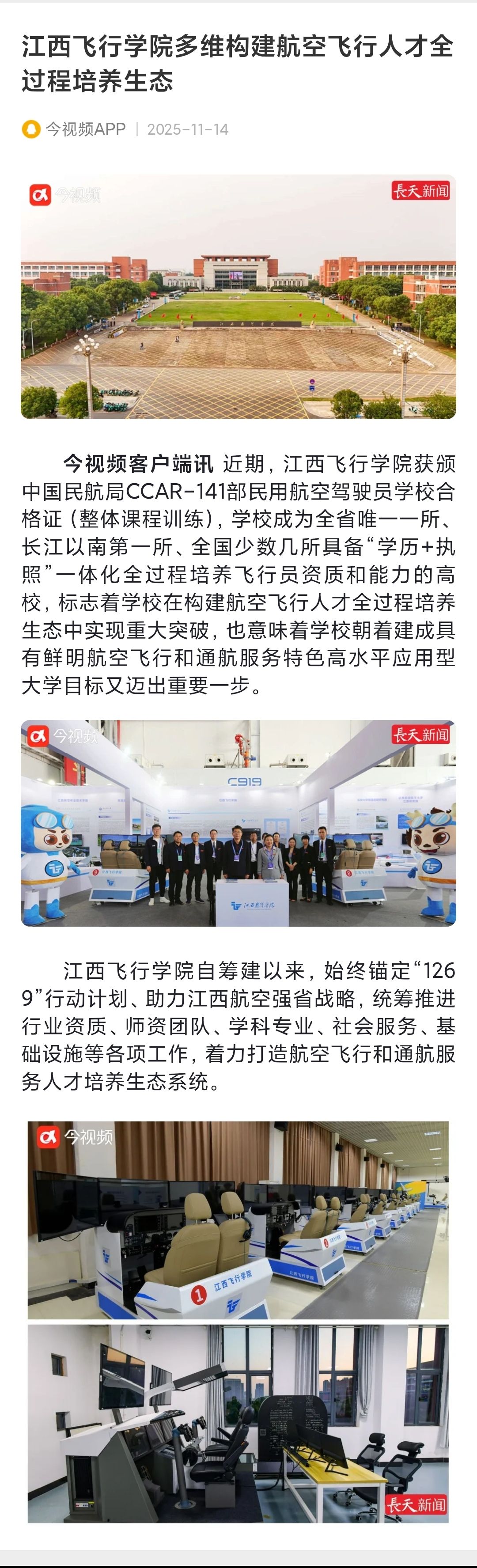 近日,腾讯网报道,江西飞行学院多维构建航空飞行人才全过程培养生态详情如下: