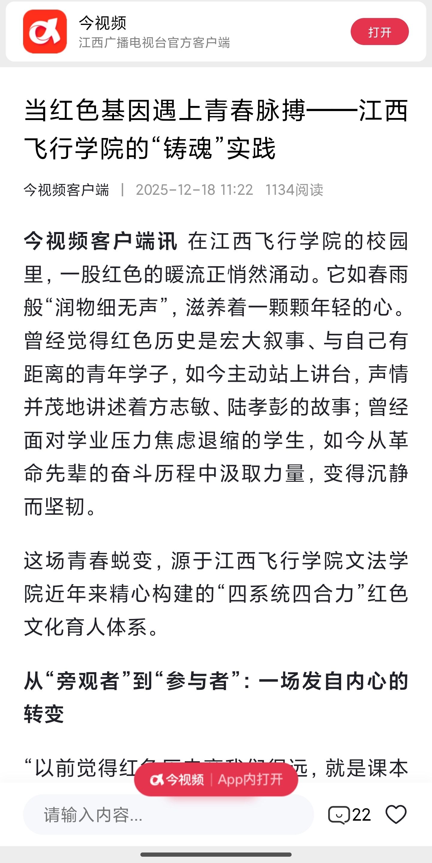 今视频:江西飞行学院开展当红色基因遇上青春脉搏——江西飞行学院的“铸魂”实践