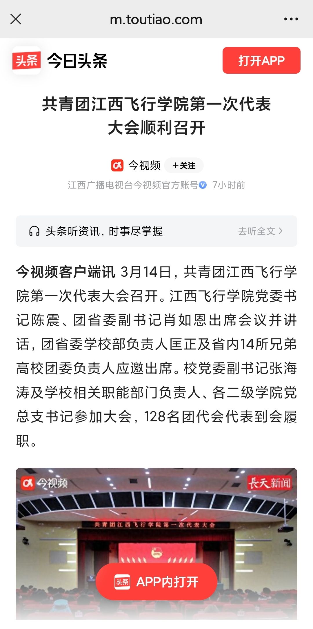 近日,今日头条报道,江共青团江西飞行学院第一次代表大会顺利召开详情如下:
