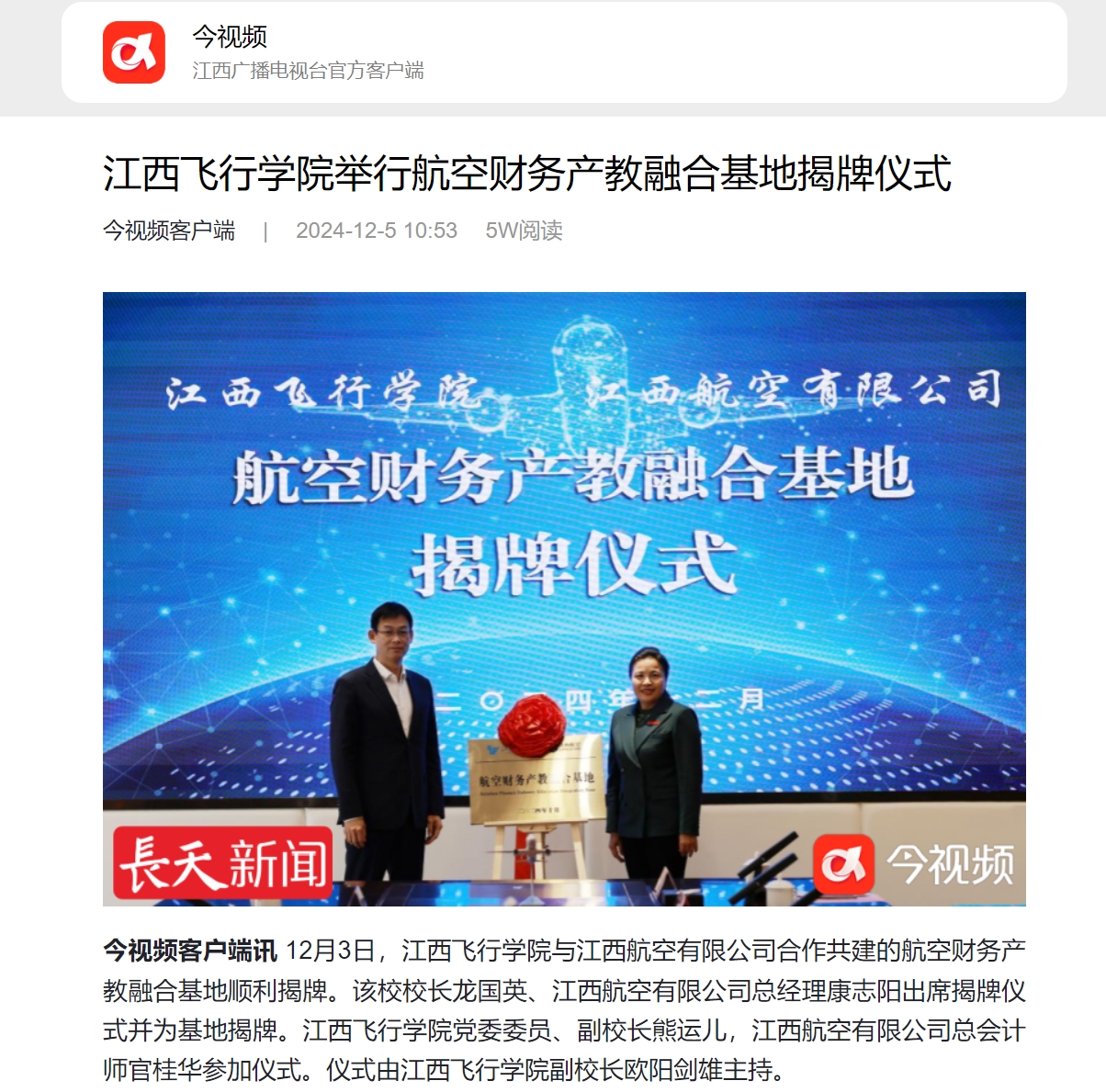 近日,今视频报道,江西飞行学院举行航空财务产教融合基地揭牌仪式详情如下: