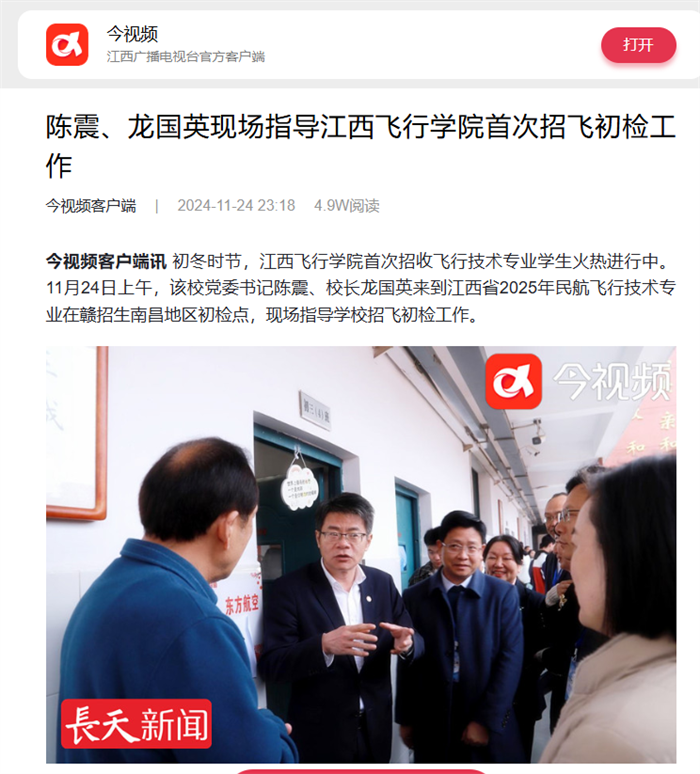 近日,今视频报道,陈震、龙国英现场指导学校首次招飞初检工作。详情如下: