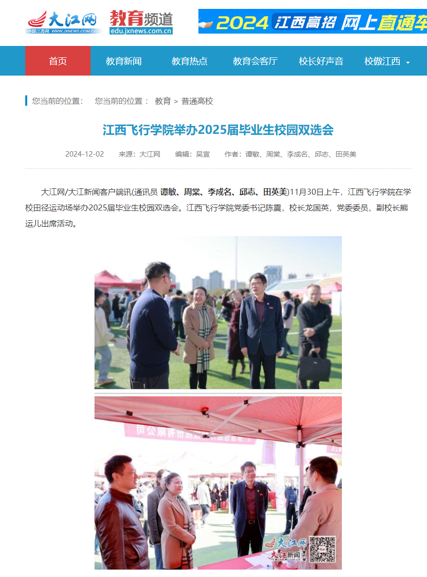 近日,大江网报道,江西飞行学院举办2025届毕业生校园双选会详情如下: