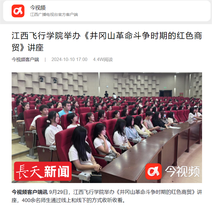 近日,今视频报道,学校举办《井冈山革命斗争时期的红色商贸》讲座,详情如下: