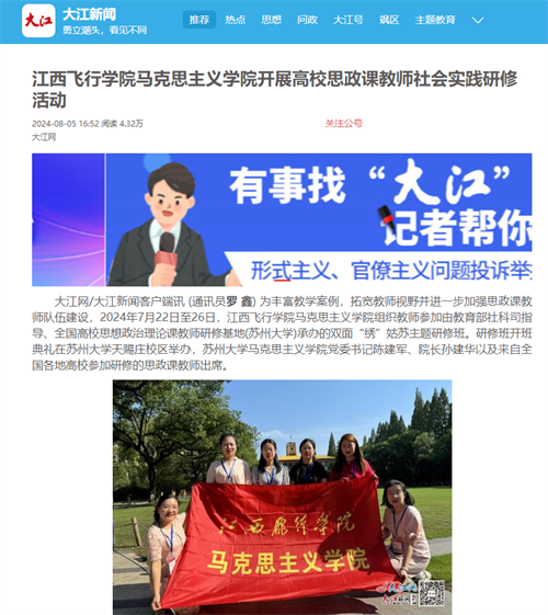 大江网:江西飞行学院马克思主义学院开展高校思政课教师社会实践研修活动