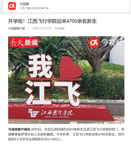 近日,今视频报道,开学啦!江西飞行学院迎来4700余名新生。详情如下: