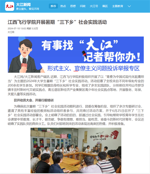 大江网:江西飞行学院开展暑期“三下乡”社会实践活动