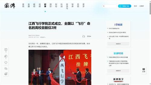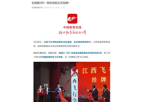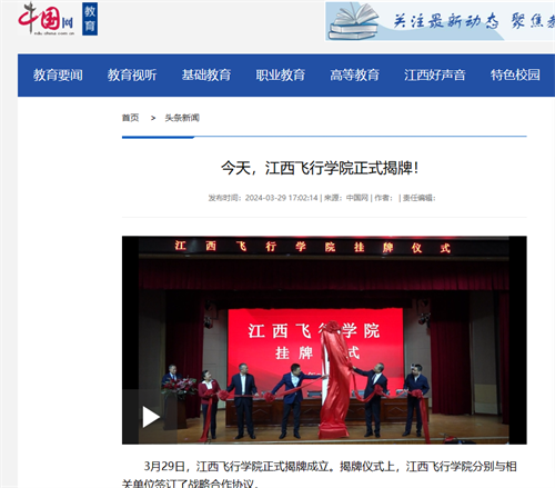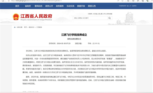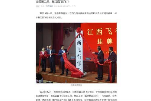 近日,多家媒体报道,江西飞行学院挂牌成立。详情如下: