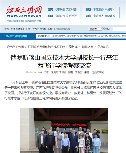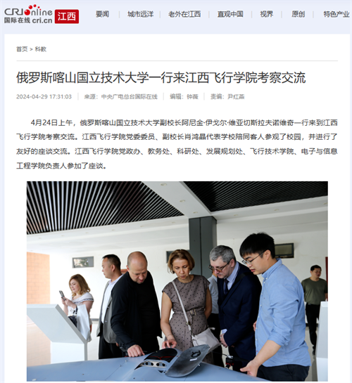 多家媒体报道:俄罗斯喀山国立技术大学副校长一行来江西飞行学院考察交流