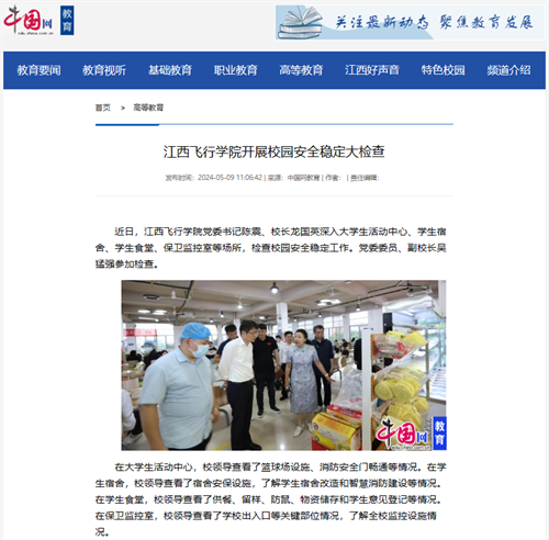 中国网报道:江西飞行学院开展校园安全稳定大检查