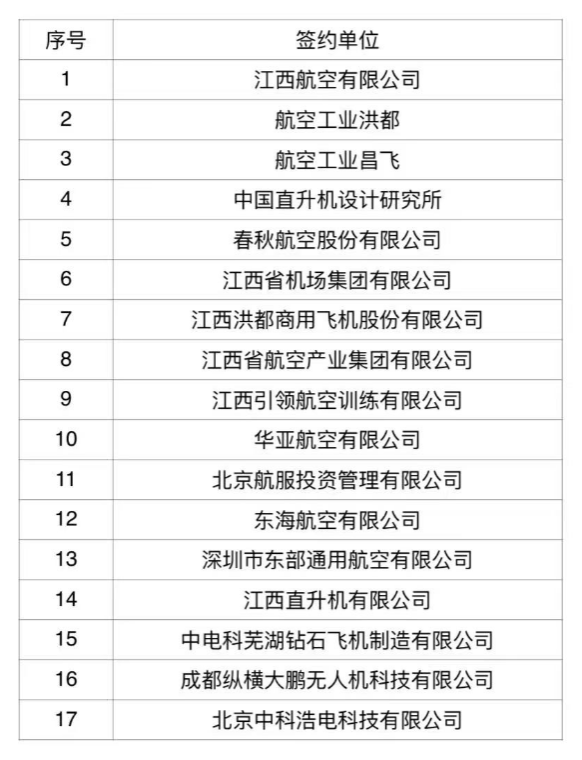 江西飞行学院战略合作协议 部分签约单位