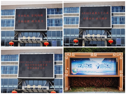 通过大屏幕滚动播放节水标语、宣传栏张贴大幅海报,希望能提高全校师生的节水意识,节约用水从点滴做起。