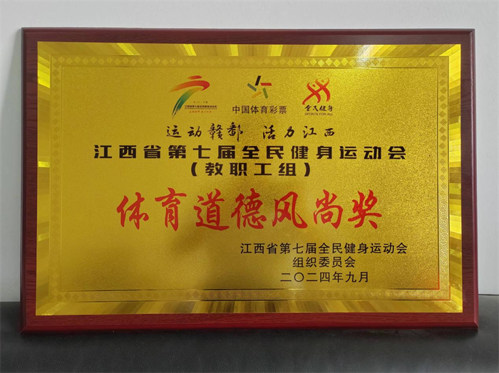 2024年9月2日至9月6日,由江西省教育厅主办的第一届“树人杯”江西省教职工七人制足球比赛在吉安市吉州区顺利举行。校工会组建的学校教职工足球代表队在全省教职工男子本科院校组比赛中,凭着精湛的球技、顽强拼搏的精神,经历小组赛和淘汰赛的激烈角逐,最终取得全省男子本科组第八名的好成绩,并获评“体育道德风尚奖”。