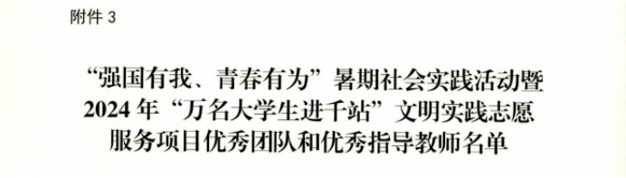 【喜报】学校在2024年“万名大学生进千站”文明实践志愿服务活动中获得荣誉