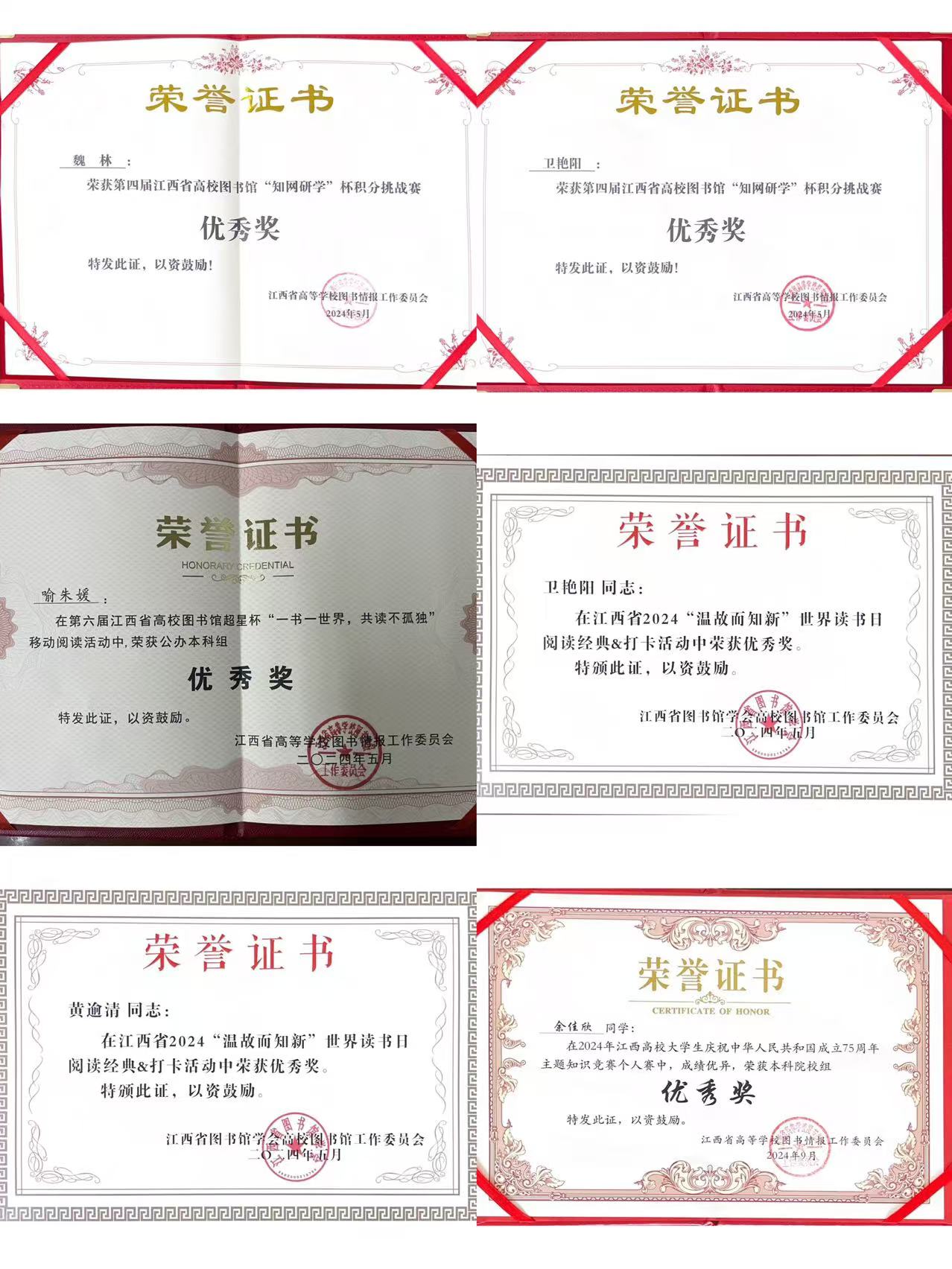2024是收获颇丰的一年,图书馆组织参加的各类活动及参与评优评先活动中共获得省级奖励28人次,图书馆获得江西高校图书馆联盟2024年度“管理工作先进单位”。