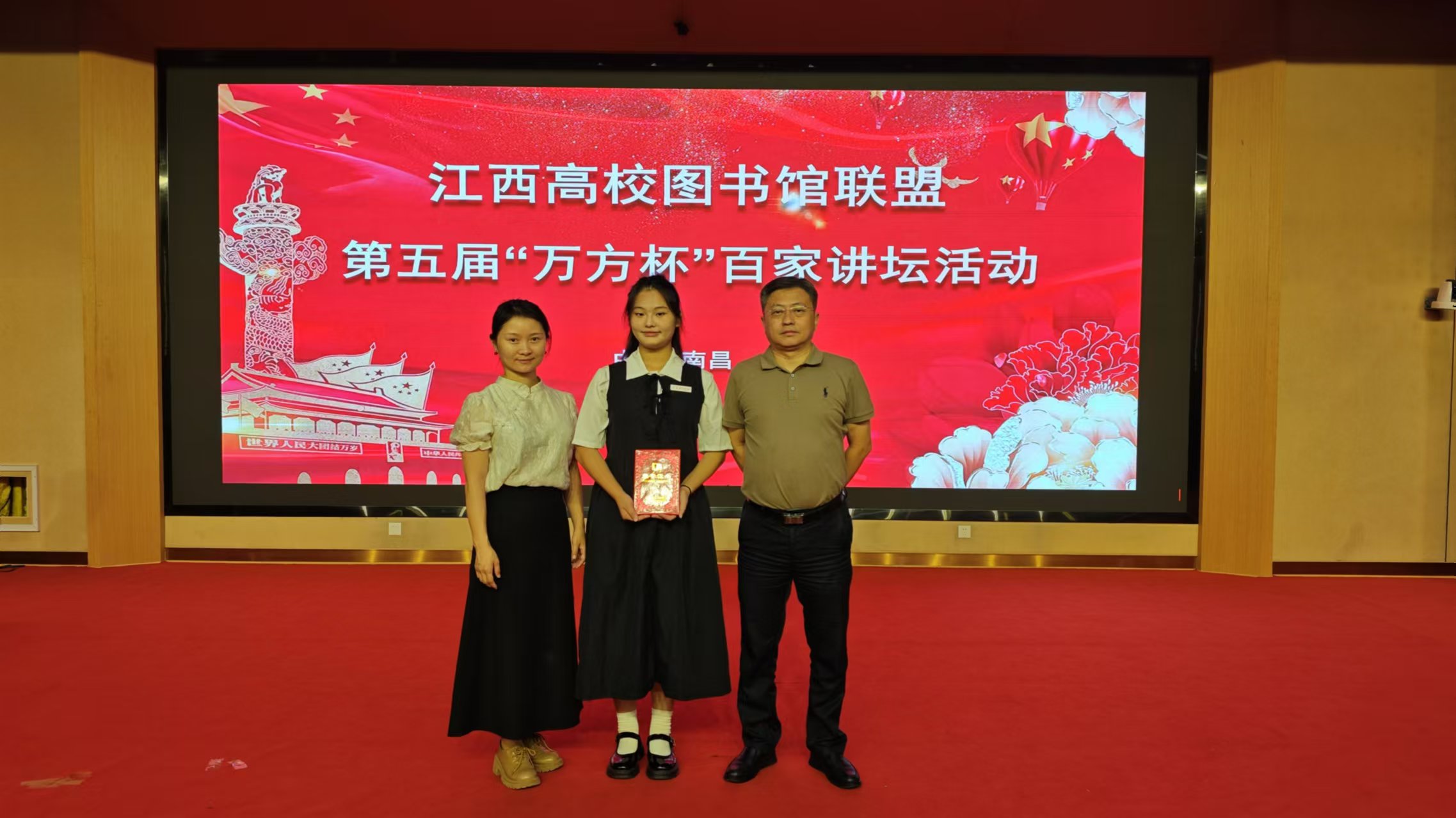 10月18日,江西高校图书馆联盟第五届“万方杯”百家讲坛活动在东华理工大学举行,来自省内15所本科高校的学生同台竞技。我校231大数据技术专业学生许童代表学校图书馆参加了比赛。