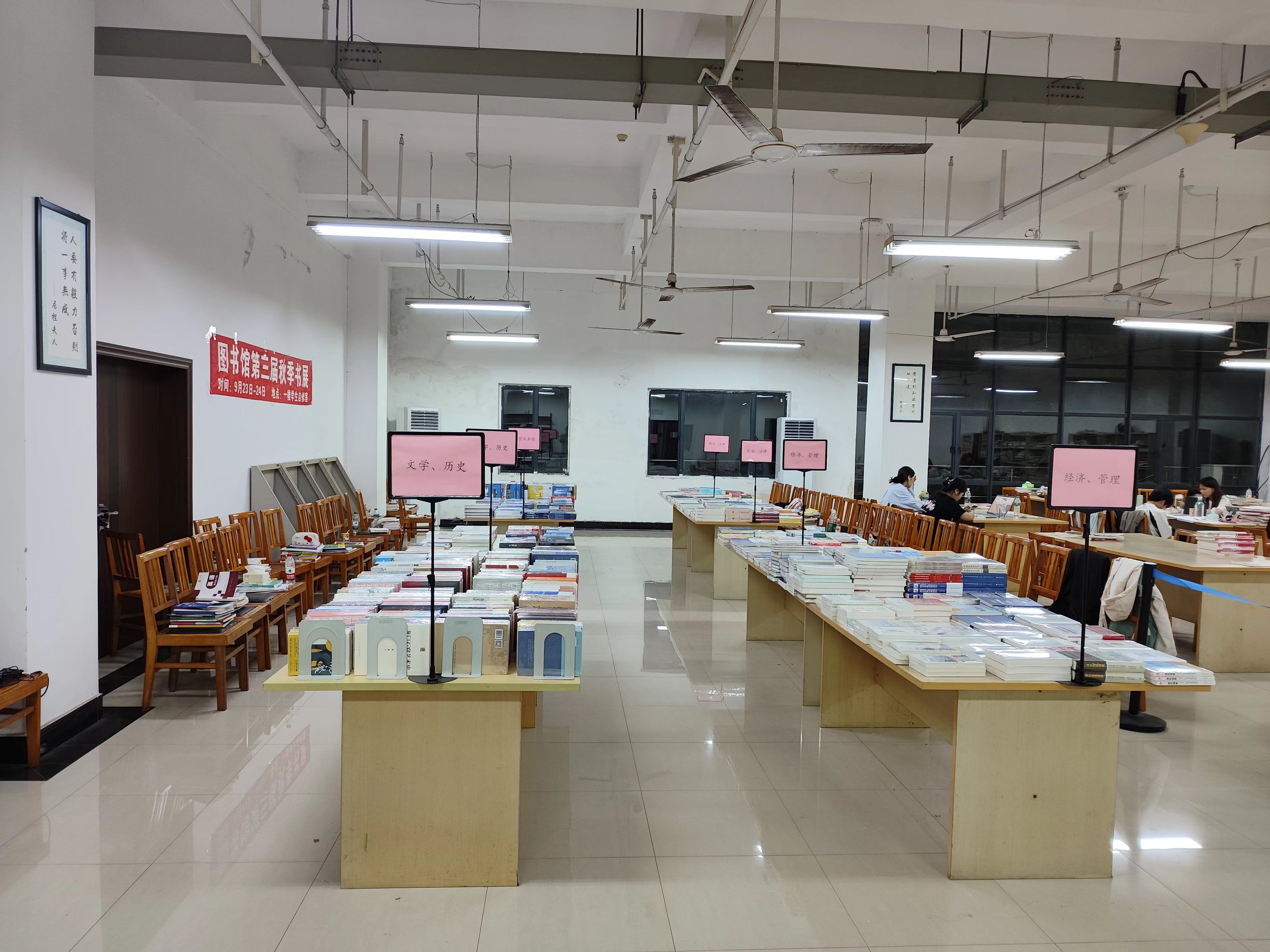 为营造良好的读书氛围,构建书香校园文化,9月23日至24日,图书馆在一楼学生自修室举办以“阅见世界·读享人生”为主题的第三届秋季书展,共展出新书600余种、1500余册。