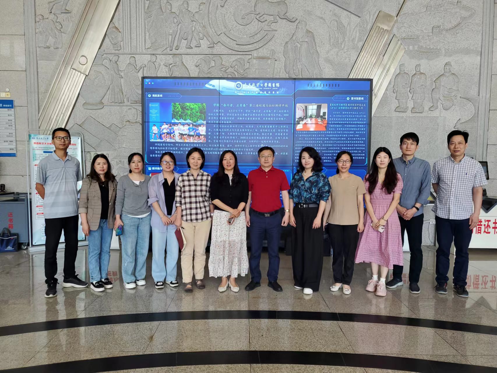 随后的对口交流环节,我馆一行参观了南航图书馆,了解馆内建筑布局、馆藏分布和智慧化设施设备,同时在参观过程中各科室进行了深入的业务交流。