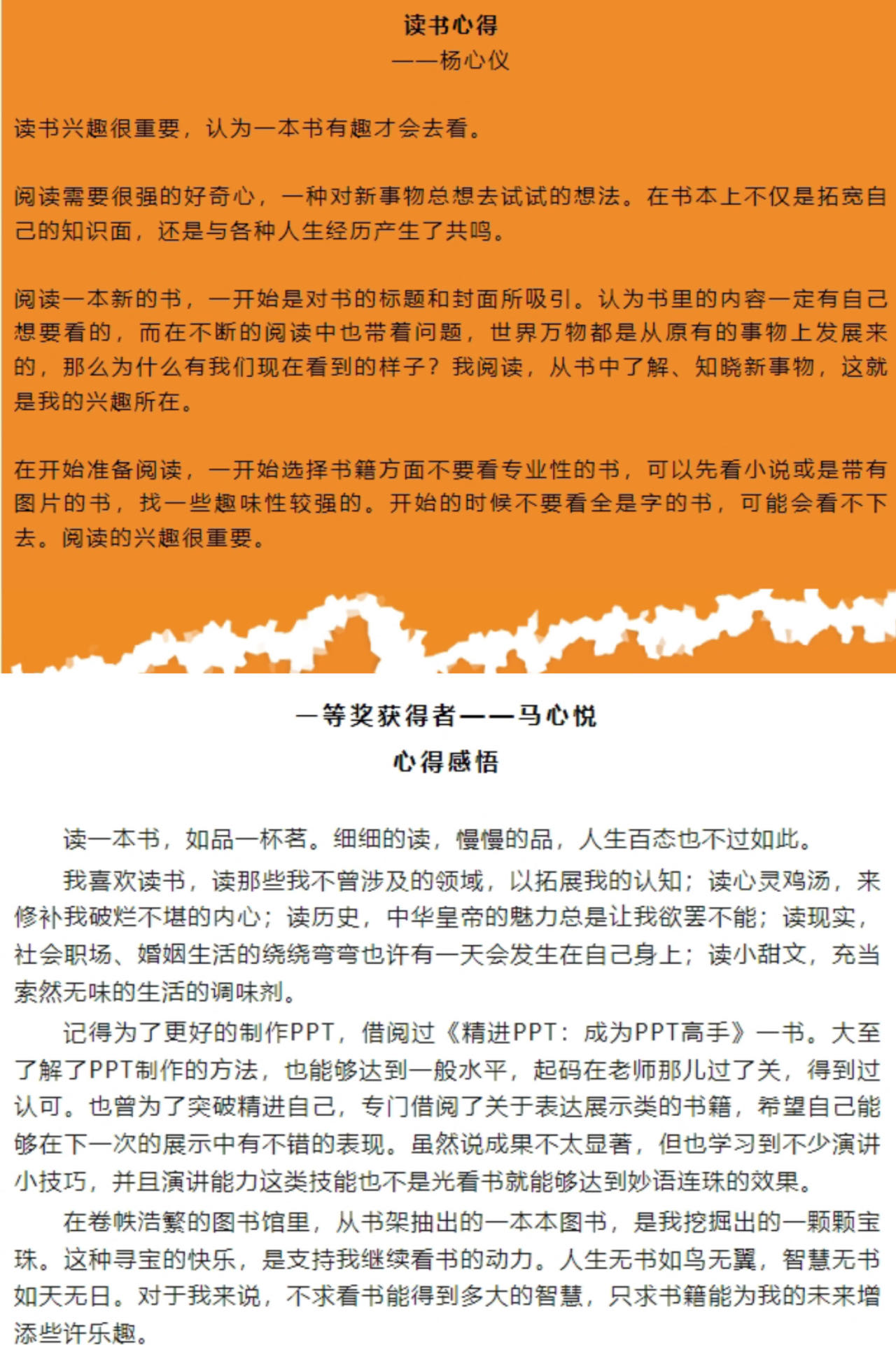 (让我们来看看爱阅读的杨同学和马同学对于读书的一些所思所悟吧)