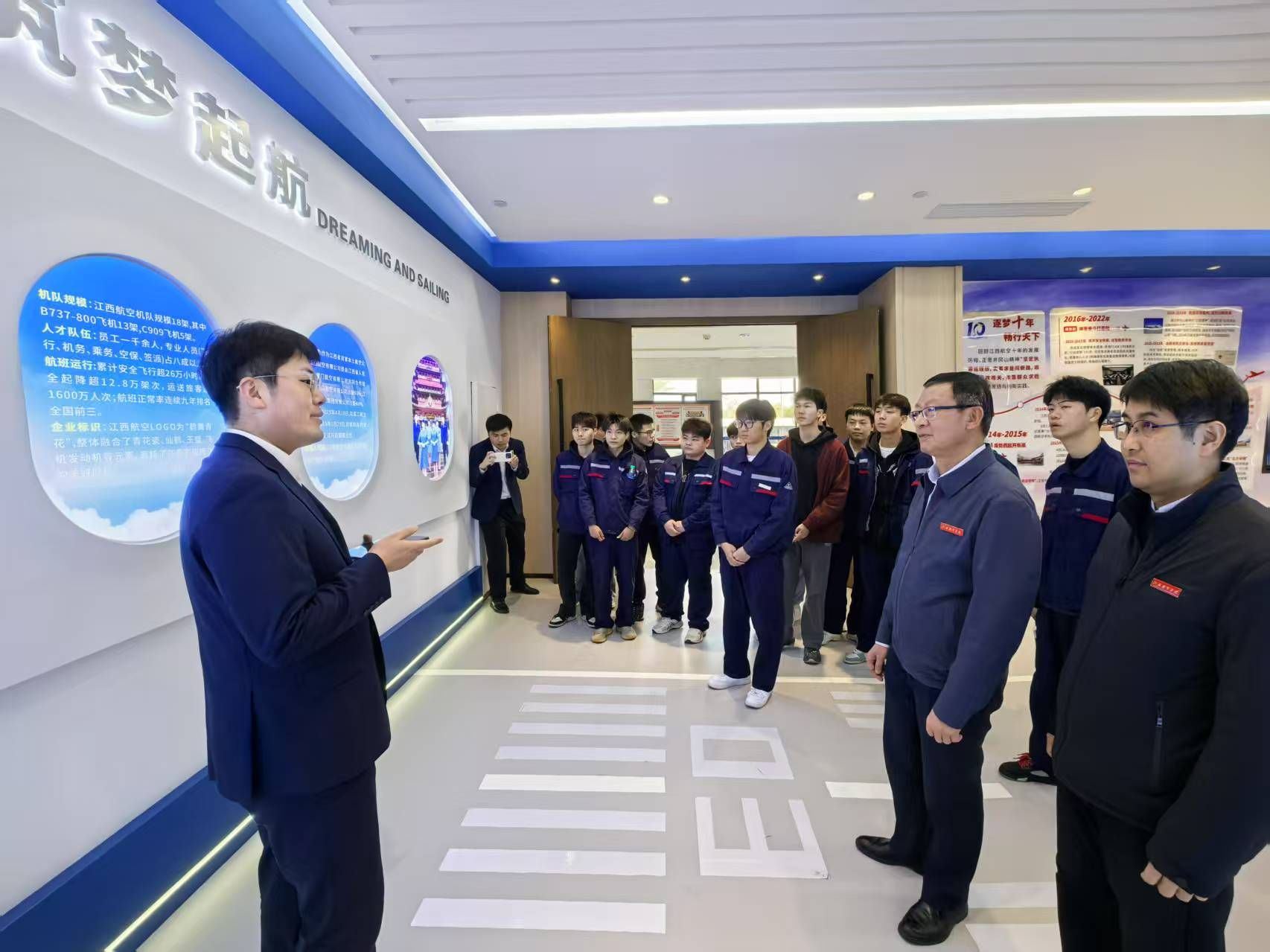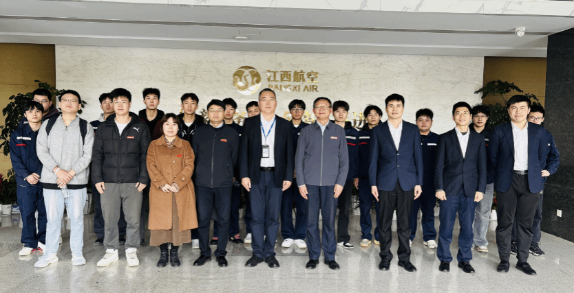 为深化校企合作,促进产教融合,4月1日下午,江西飞行学院航空机电工程学院党支部书记郭青山、副书记樊斌带领十余名大三学生前往江西航空进行交流学习。