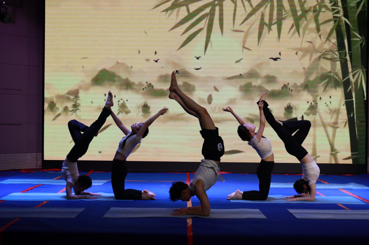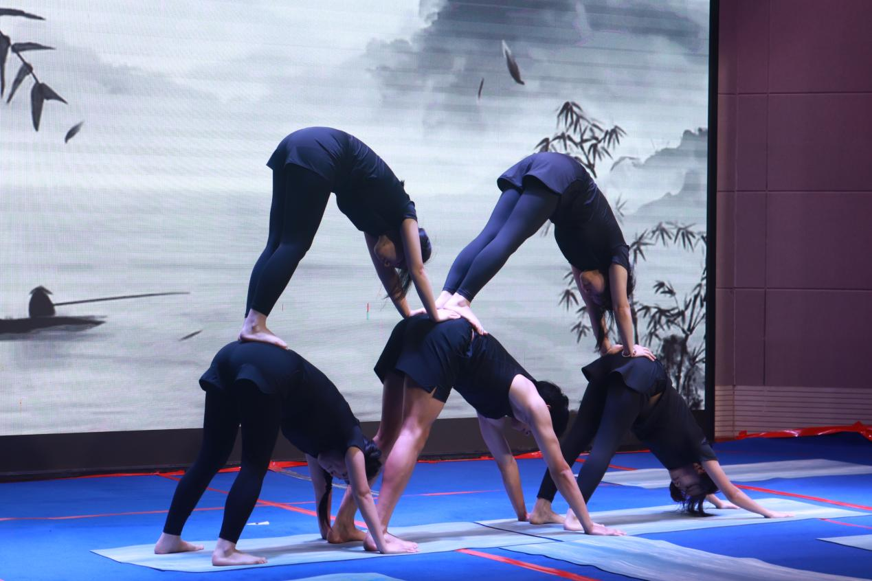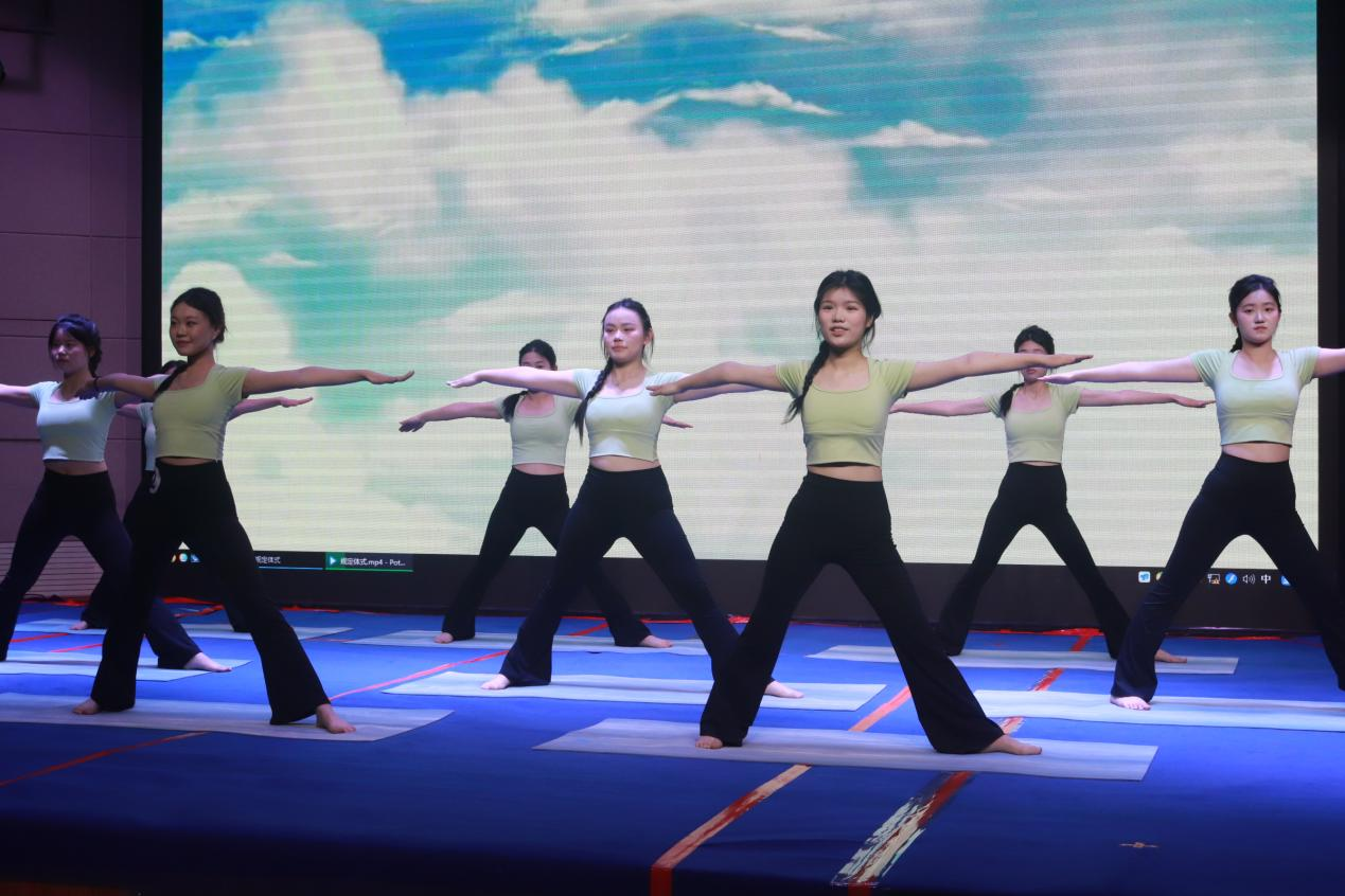本次比赛设置健身瑜伽自编套路及规定套路两个项目,既考验选手的艺术创造力,又彰显瑜伽运动的规范性与技术深度。来自七个二级学院的参赛团队,“以身为笔、以息为墨”,在方寸之间勾勒出力与美的诗篇,宛如灵动的精灵,将身体的柔软与生命的力量完美融合,在这方舞台上绘就出灵动而美妙的画面。