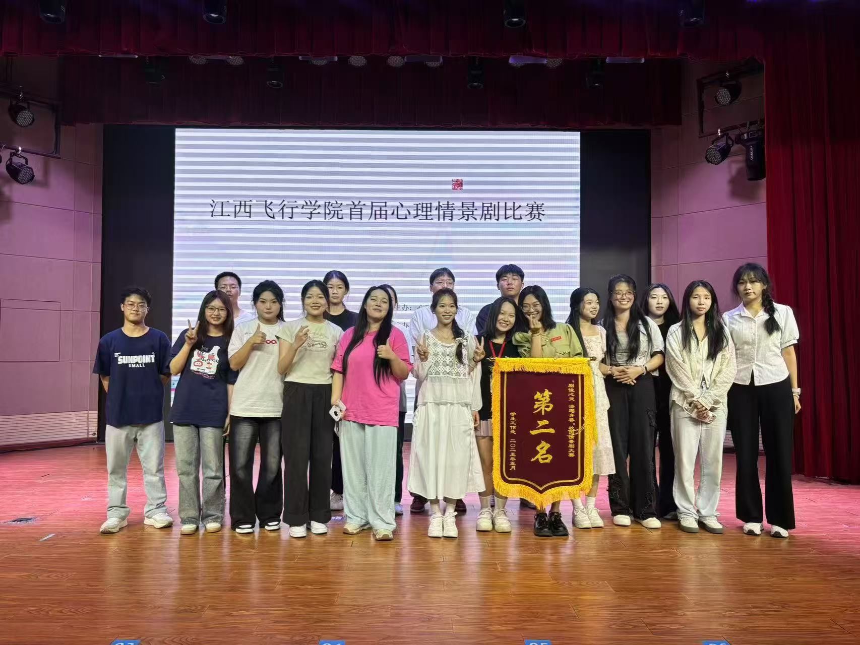 演绎心灵故事,传递温暖力量。5月21日晚,在“剧说心灵,谱写青春”心理情景剧比赛中,赣物远航班的同学们提前来到比赛现场,让自己的意识带到角色中去,从而更好地将角色的情感更好地呈现出来。他们的行动充分诠释了“顽强拼搏,力争上游”的竞赛精神。其中,章宇涵荣获竞赛第二名。