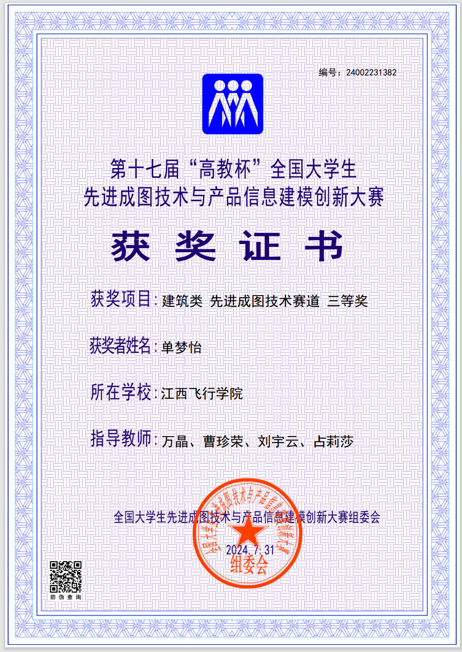 第十七届“高教杯”全国大学生先进成图技术与产品信息建模创新大赛全国总决赛在贵州大学举行,本次比赛设贵州大学主赛场和各省多个分赛场。机场学院学子参加了设立在南昌航空大学分赛场的建筑类个人赛项,最终获得个人二等奖1项,个人三等奖2项。