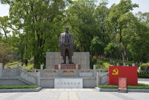 一进入园区,一尊高大庄严的方志敏雕塑赫然矗立。他双手交叠于胸前,目光里流淌着穿越时空的平和,静静俯瞰着这片他曾用生命守护的盛世山河。雕塑前方“人民英雄方志敏”七个鎏金大字苍劲如铁,在阳光下折射出信仰的光芒,仿佛在无声诉说着英烈的生平。