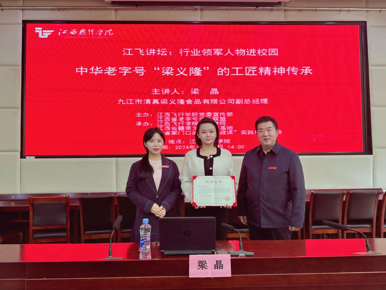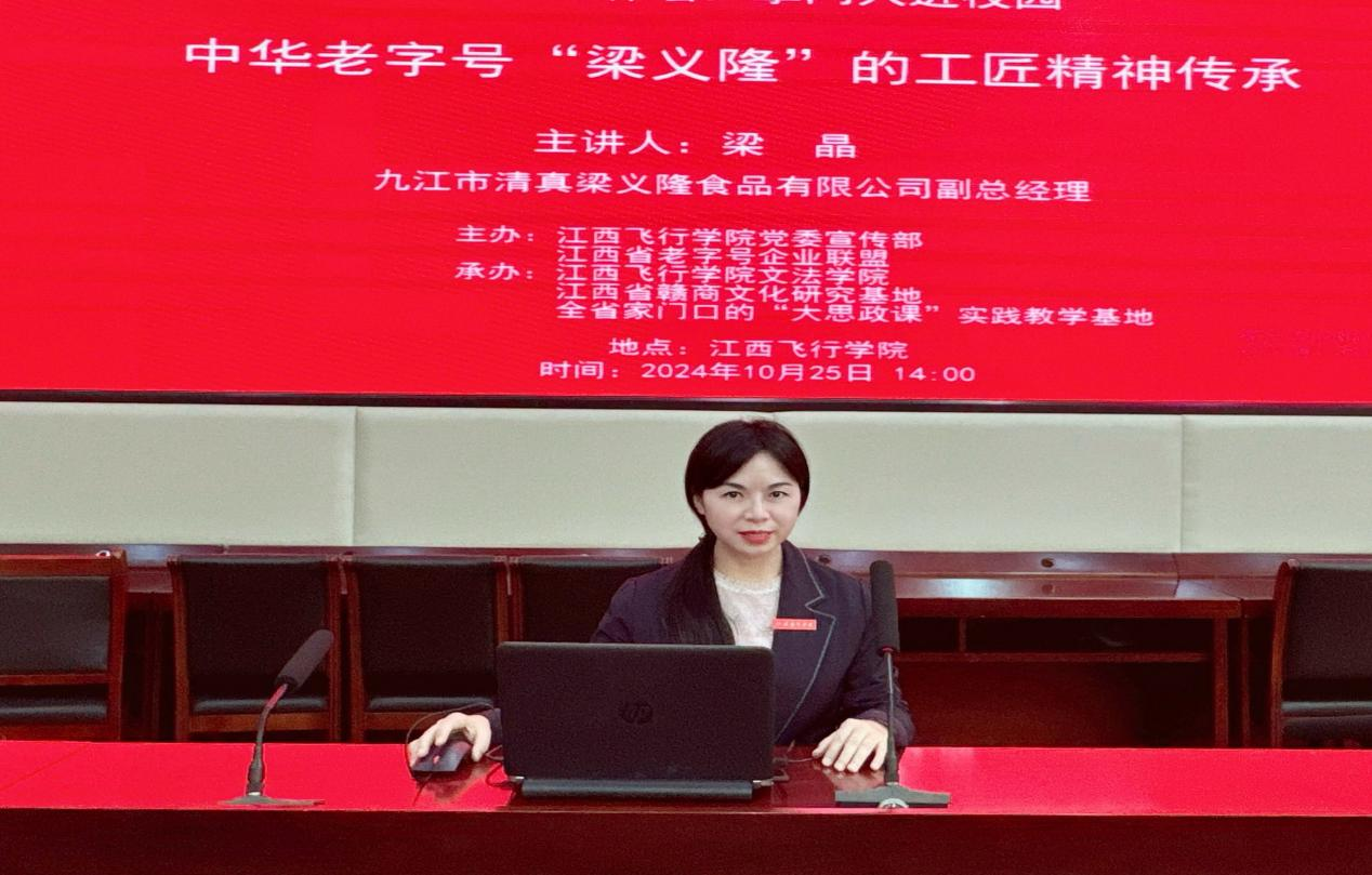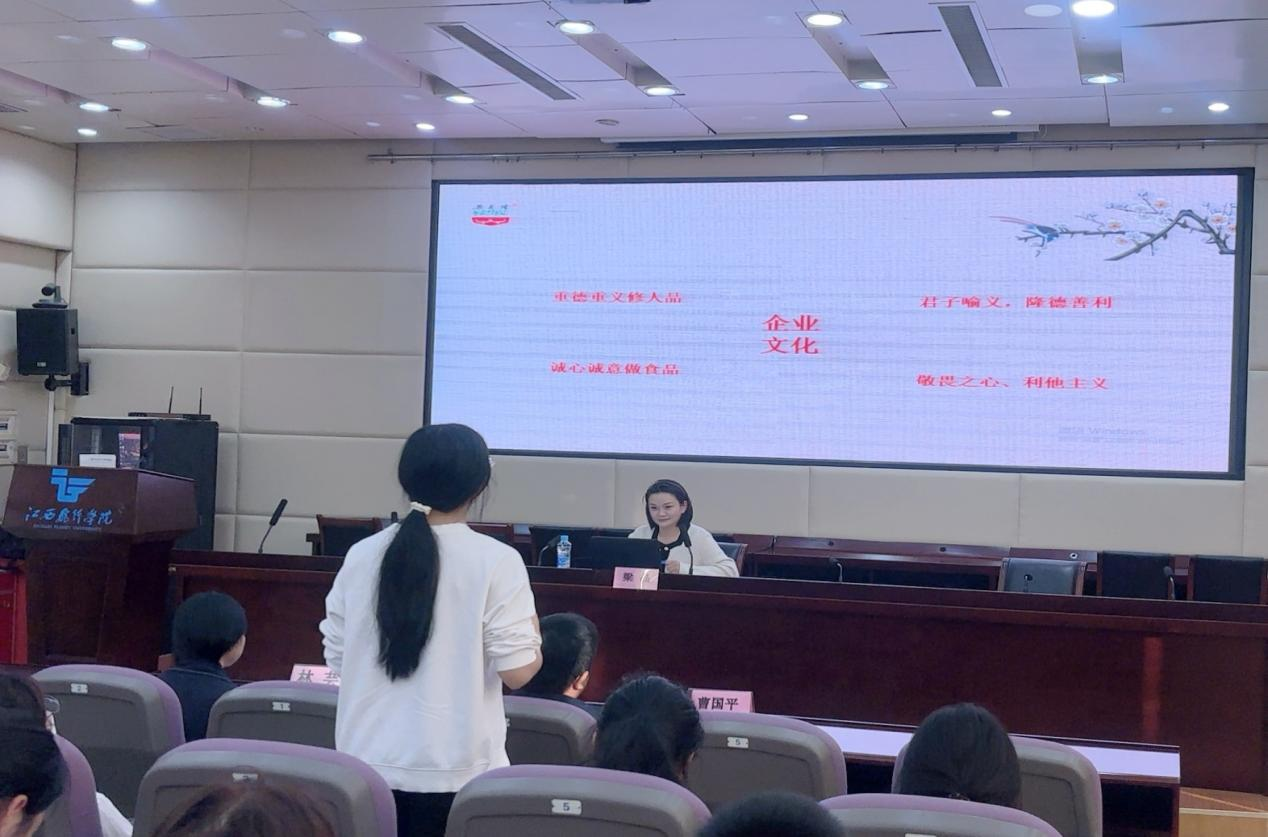 食品行业领军人物、江西省九江市清真梁义隆食品有限公司副总经理、非物质文化遗产市级代表性传承人梁晶,为师生带来一场关于“梁义隆”工匠精神传承的精彩讲座。梁晶从品牌历史讲起,深入阐述了工匠精神的精髓——精益求精、专注执着和创新进取,这些品质让老字号企业在新时代焕发迷人魅力。梁晶与师生的互动环节将现场气氛推向高潮。现场气氛活跃,思维碰撞不断。