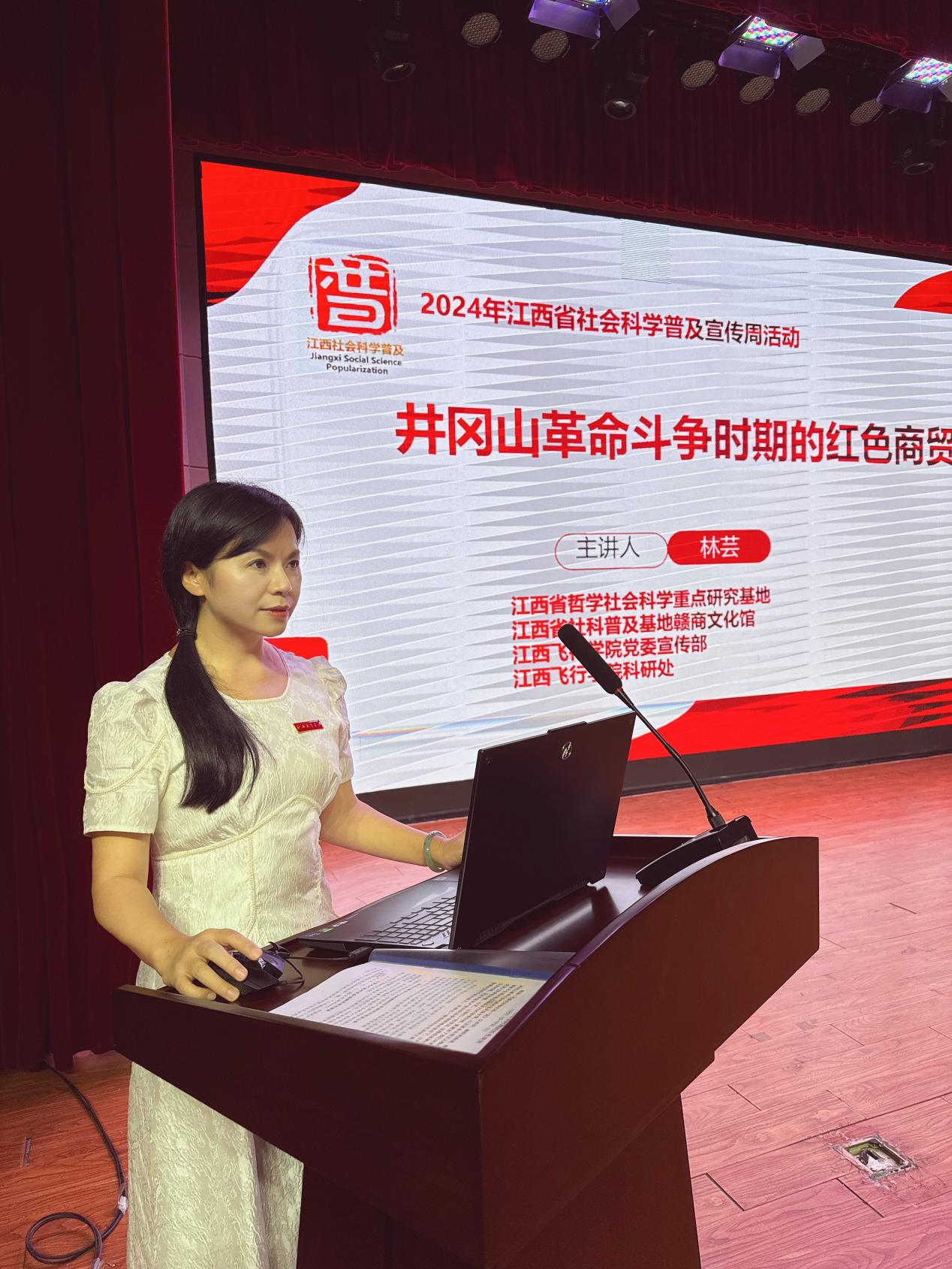 为积极响应中共江西省委宣传部江西省社联共同发起2024年江西省社会科学普及宣传周活动的号召,929日,文法学院院长、江西省赣商文化研究基地主任林芸教授在江西飞行学院航空大楼会议厅开展了《井冈山革命斗争时期的红色商贸》专题讲座。文法学院副书记曹国平担任主持。300余名师生现场参与,100名师生通过腾讯会议观看直播。此次讲座也是文法学院为庆祝中华人民共和国成立75周年精心策划的系列活动之一。