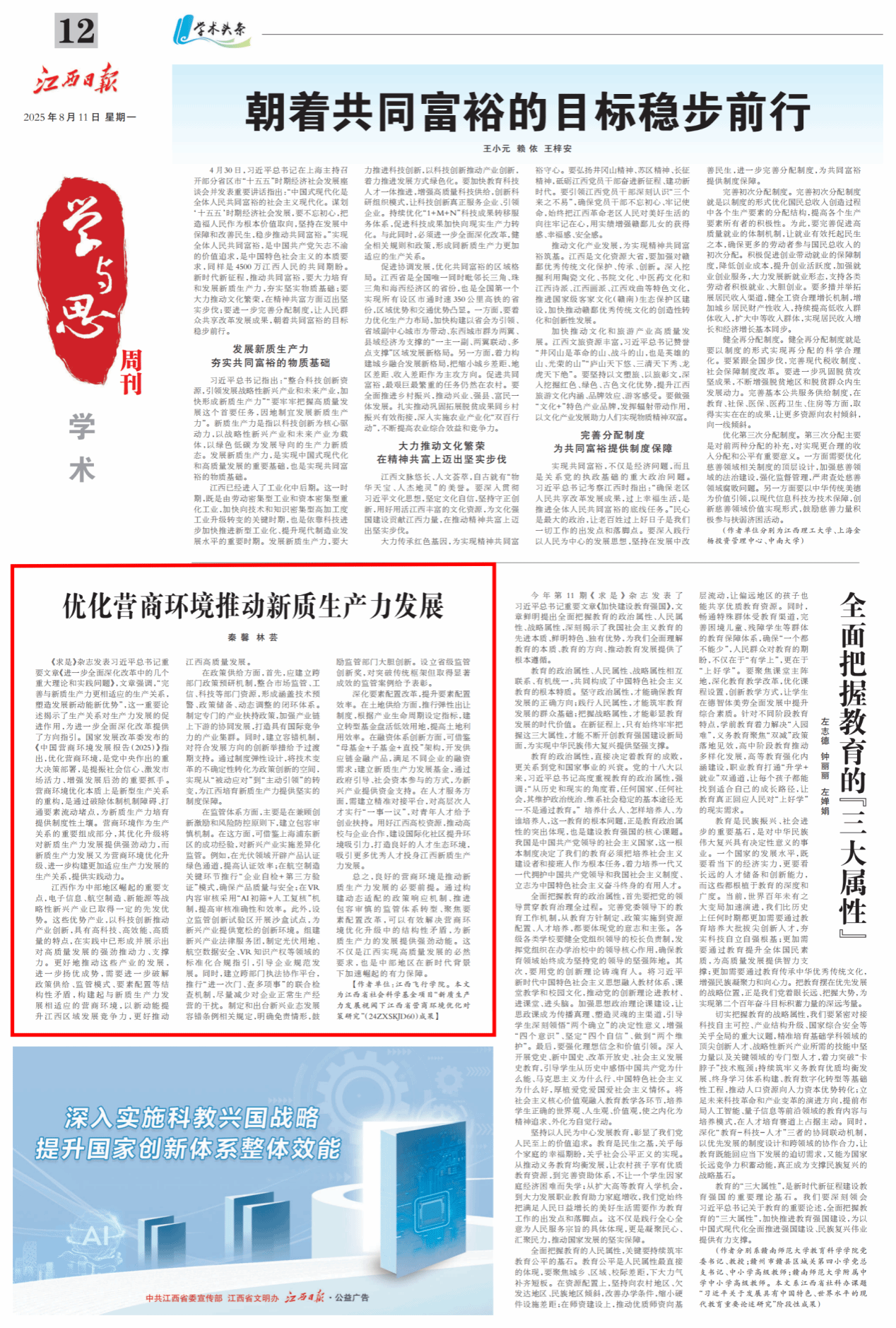 近日,江西省赣商文化研究基地专家撰写的论文《优化营商环境 推动新质生产力发展》在《江西日报》刊发。